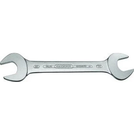 Clé plate double, DIN 3110 Cote s/plats : 21 x 24 mm, Longueur 250 mm – Chromé mat – Forgé – Angle de la tête incliné à 15° – DIN 3110, ISO 3318, ISO 1085, ISO 10102 – Acier au vanadium GEDORE 31CrV3 – Qualité industrielle supérieure pour un usage continu et intense