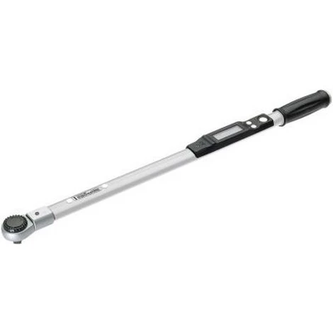Clé dynamométrique électronique TORCOTRONIC II Graduation : 0,1 N·m, Entraînement à 4 pans 9 x 12 mm, Longueur 469 mm – Couple de rotation réglable – Lisible sur écran LCD – Réglage du couple de rotation au moyen de touches multifonctions – Poignée en plastique – Compartiment de batterie intégré – Boîtier en tube d’acier – Cliquet réversible à levier interchangeable – Logement rectangulaire pour outils emboîtables – Serrage contrôlé à droite et à gauche – Signal LED optique et signal audible lorsque le couple de rotation est atteint – Précision de déclenchement ± 1 % – Blocage du clavier – Commutable de N·m à lbf·ft – Calibrage automatique par touche et après le mode Stand-by – 2000 emplacements mémoire – Interface USB pour échange de données – Logiciel PC facilement utilisable pour une programmation et une documentation aisée des données – Exportation des données possible vers MS Excel® Livraison : dans boîte en plastique, avec certificat d’essai, câble USB, cliquet réversible emboîtable 1/2” et CD de logiciel. Remarque : un ordinateur équipé du système d’exploitation Windows® (à partir de Windows XP®) est nécessaire pour pouvoir profiter pleinement de la palette de fonctions de la clé dynamométrique.