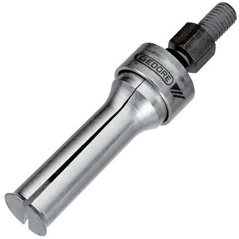 - Mode d’emploi: Faire pénétrer l’extracteur à prise interne dans le roulement et introduire la vis de force en la vissant. Les bords bien affilés de l’embase sont comprimés sous la pièce à extraire. A ce moment là, mettre les tirants en place. Les deux pieds se redressent parallèlement à la vis de force, créant ainsi un ensemble solide.