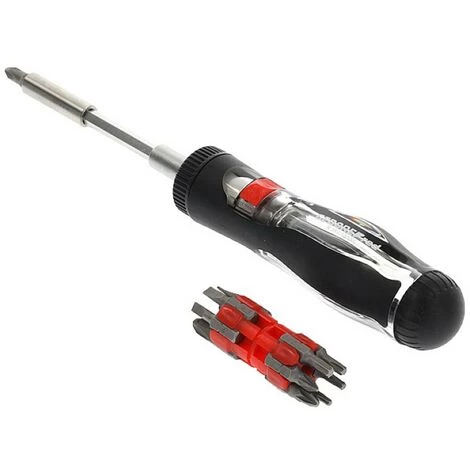 • le polyvalent : 13 profils de tournevis sont logés dans le magasin • poignée de tournevis avec fonction de cliquet intégrée, commutable • avec douille à six pans creux DIN 3126 – D 6,3 (1/4) pour embouts • lame télescopique verrouillable, réglable en continu • fonction de cliquet réversible à droite/à gauche • verrouillage par cliquet en position centrale • poignée à 2 composants, transmission de la force sans effort Ce texte a été traduit par une machine.